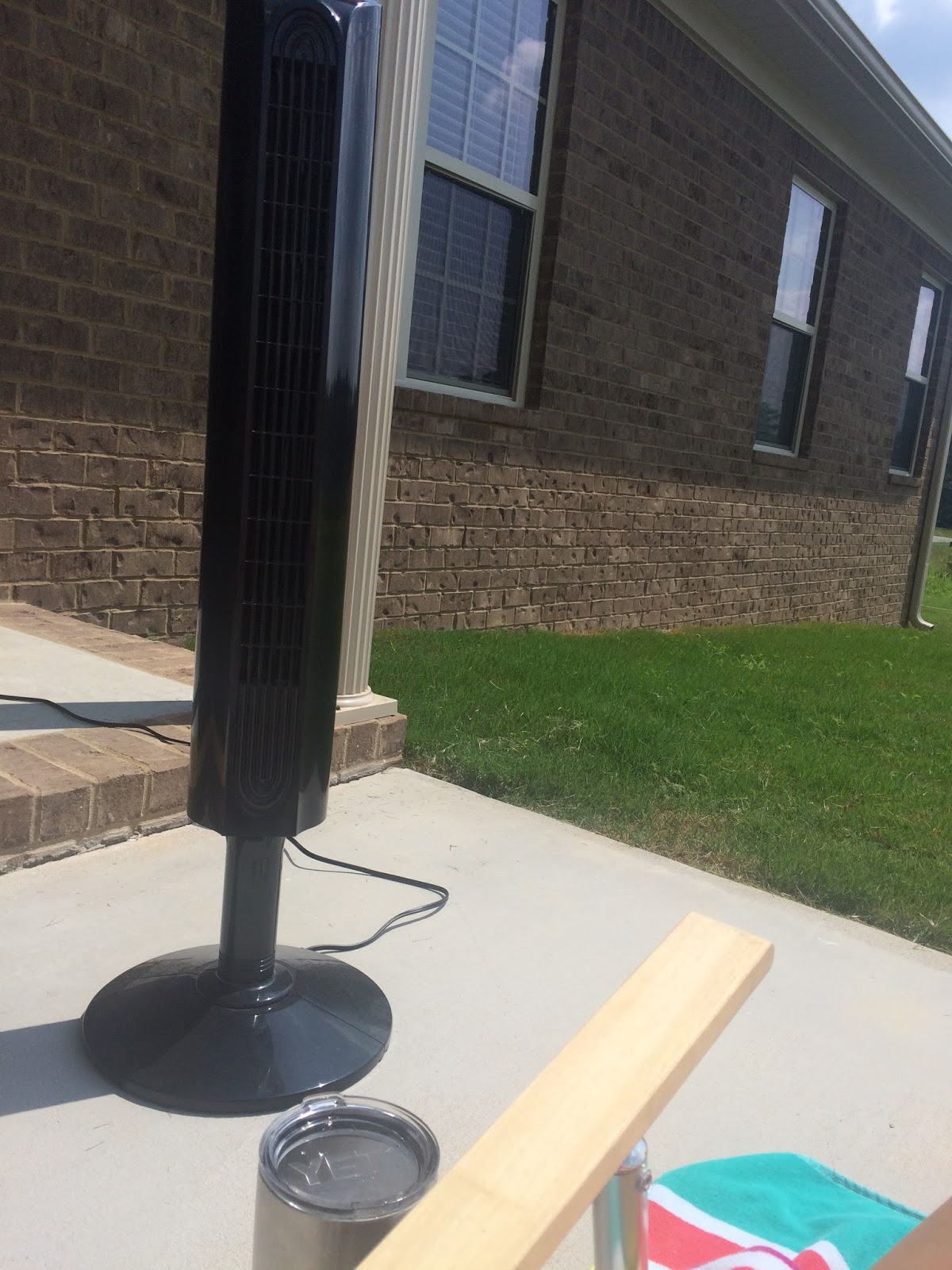 As you can see, I brought a fan outside (because we were under a heat advisory), ice water, a snack, and our bluetooth Bose speaker to listen to music. And I lasted about 20 minutes haha! It was hot!