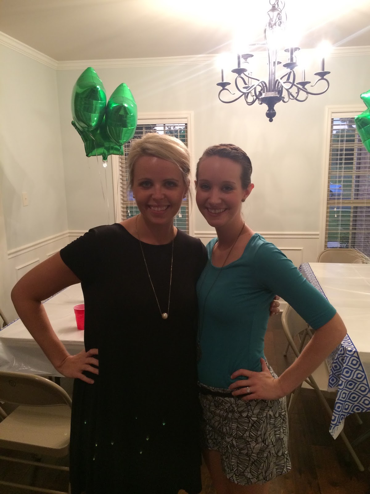 This is set up in the dining room since we don’t have dining room furniture. I went above and beyond on those decorations didn’t I? Ha. I think if I didn’t have to travel to Atlanta earlier last week and then write two papers and do a statistics project and study for two finals, then I would have had more time to decorate. Oh well. At least I stuck with a green and blue color scheme!
