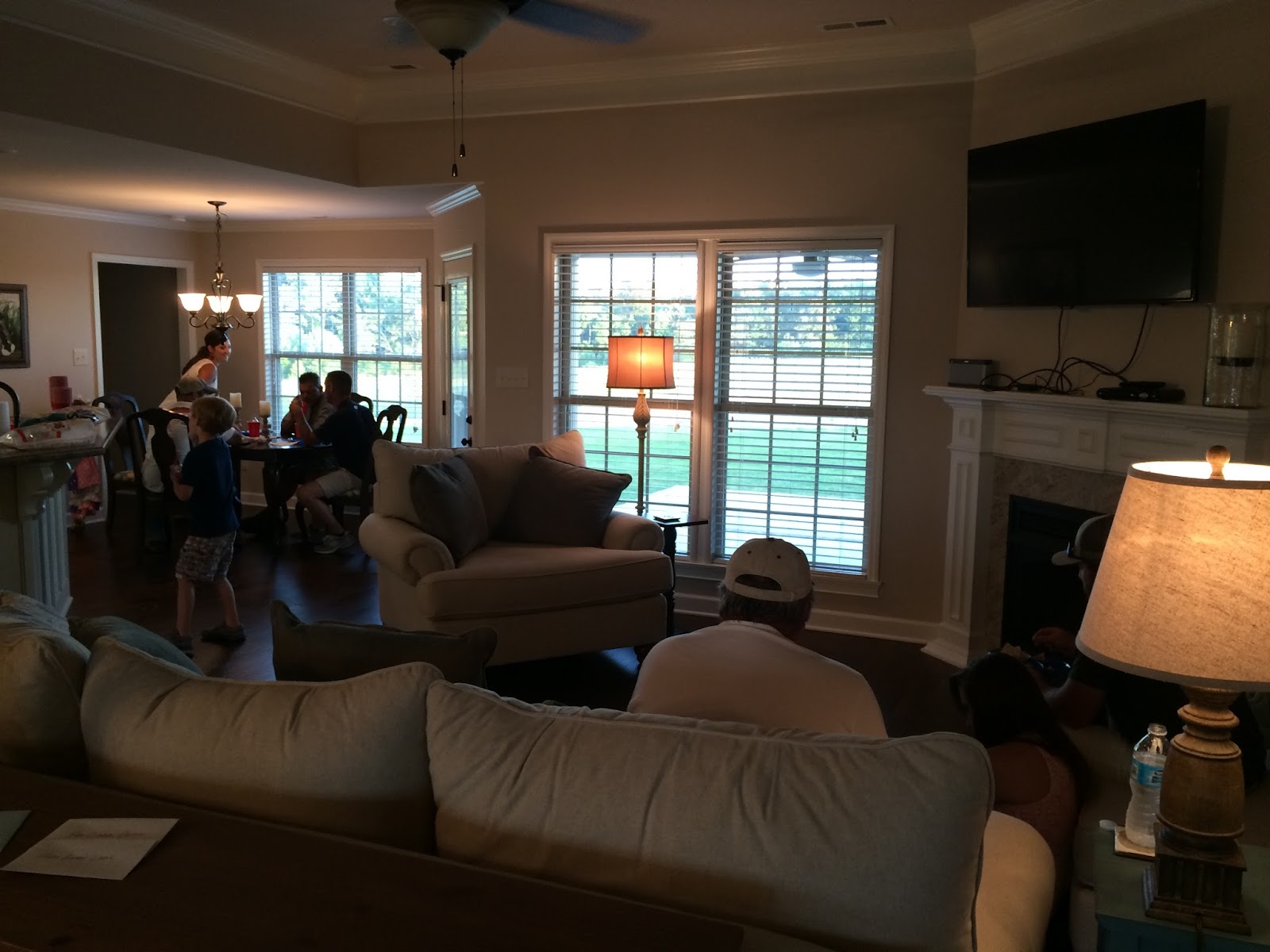 I didn’t think until I was eating that I probably better take some pictures, so this is why everyone is eating in all of these pictures. (Rachel and Nick are behind the lamp on the right. You can’t see them eating.)