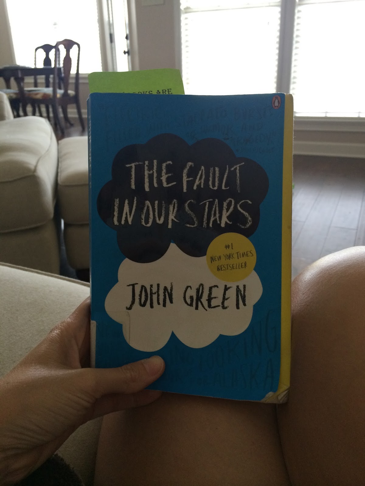 Remember how I said we went two whole weeks without internet and TV??? Well that left me with a lot of time to procrastinate grad school homework (which I’m making up for right now) and lots of time to read! I went by our public library and checked out three books. I read two of those books and gave up reading the other because I’m over the dystopian literature right now. (Side note: I told Dustin that same thing and then asked him if he knew what dystopian meant. He said no, and then I proceeded to explain dystopian vs utopian and then felt sorry for him that he married an English teacher.) I reread The Fault in Our Stars because I love it so much and cried at all of the same parts that I cried in the first time I read it. I decided that I need to buy my own copy because I want to underline every beautiful sentence I find in this novel.