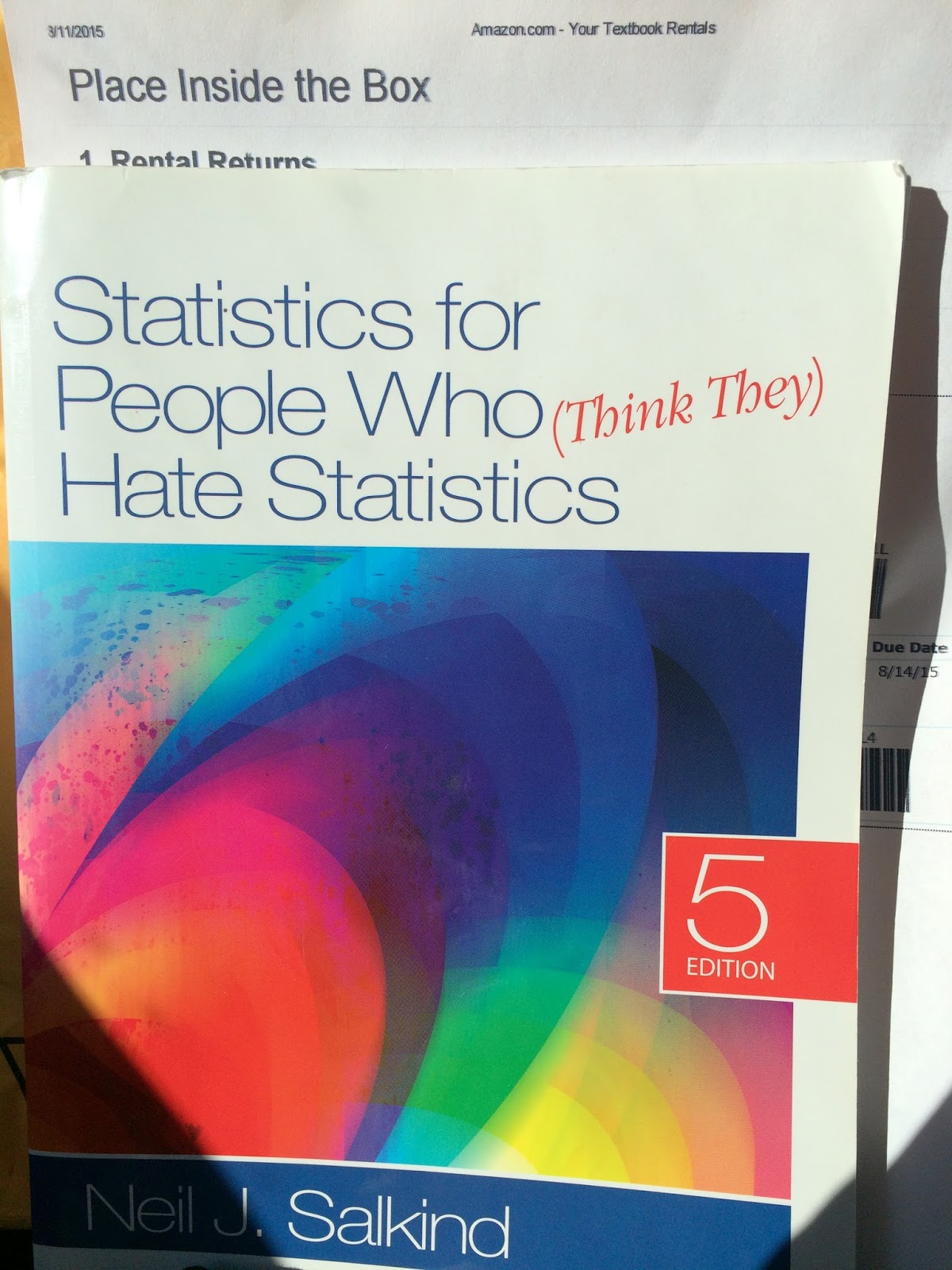 Probably my #1 FAVORITE this week–mailing this book back to Amazon!!!! NEVER AGAIN WILL I EVER TAKE STATISTICS! (I still hated statistics.)