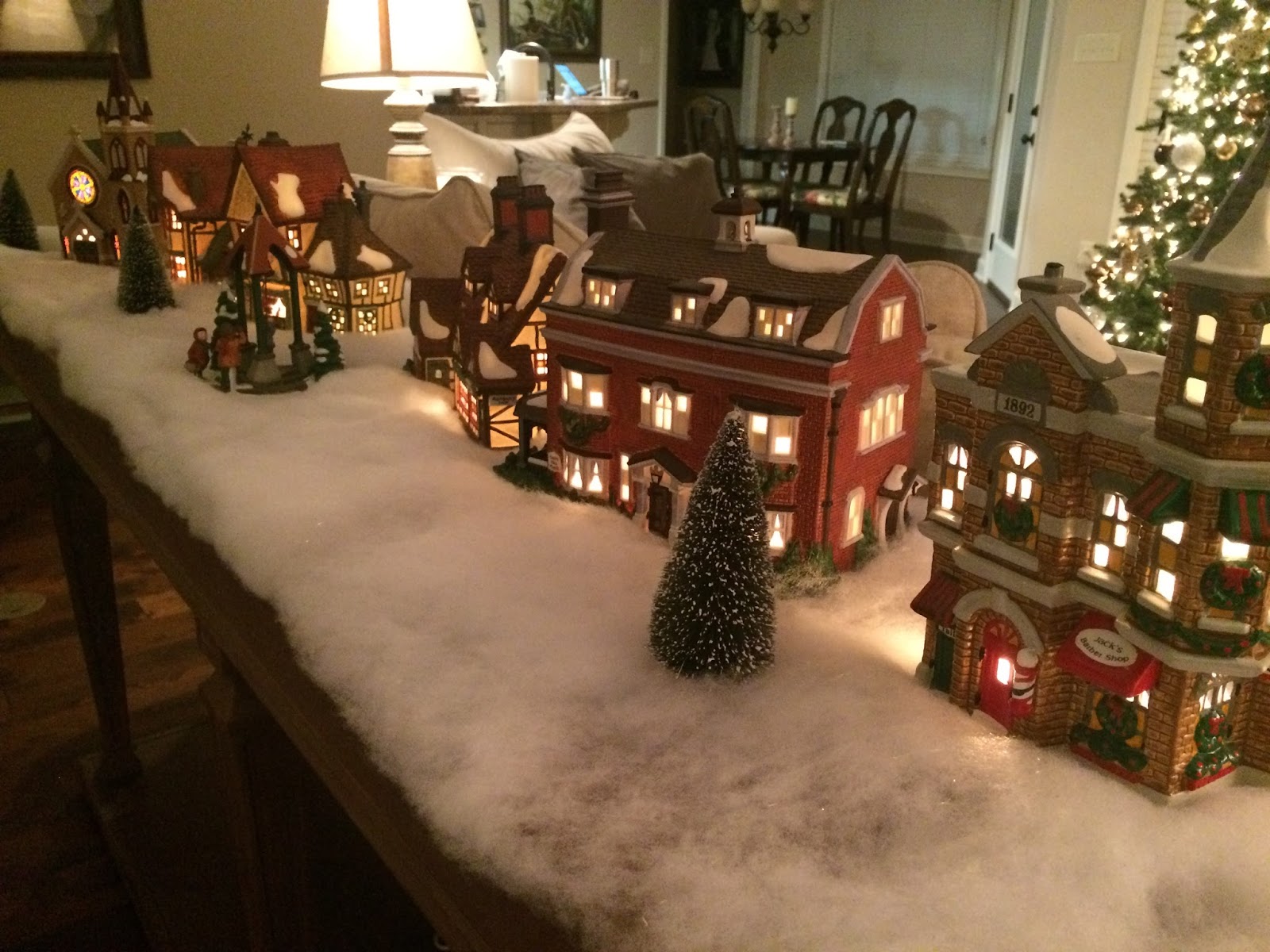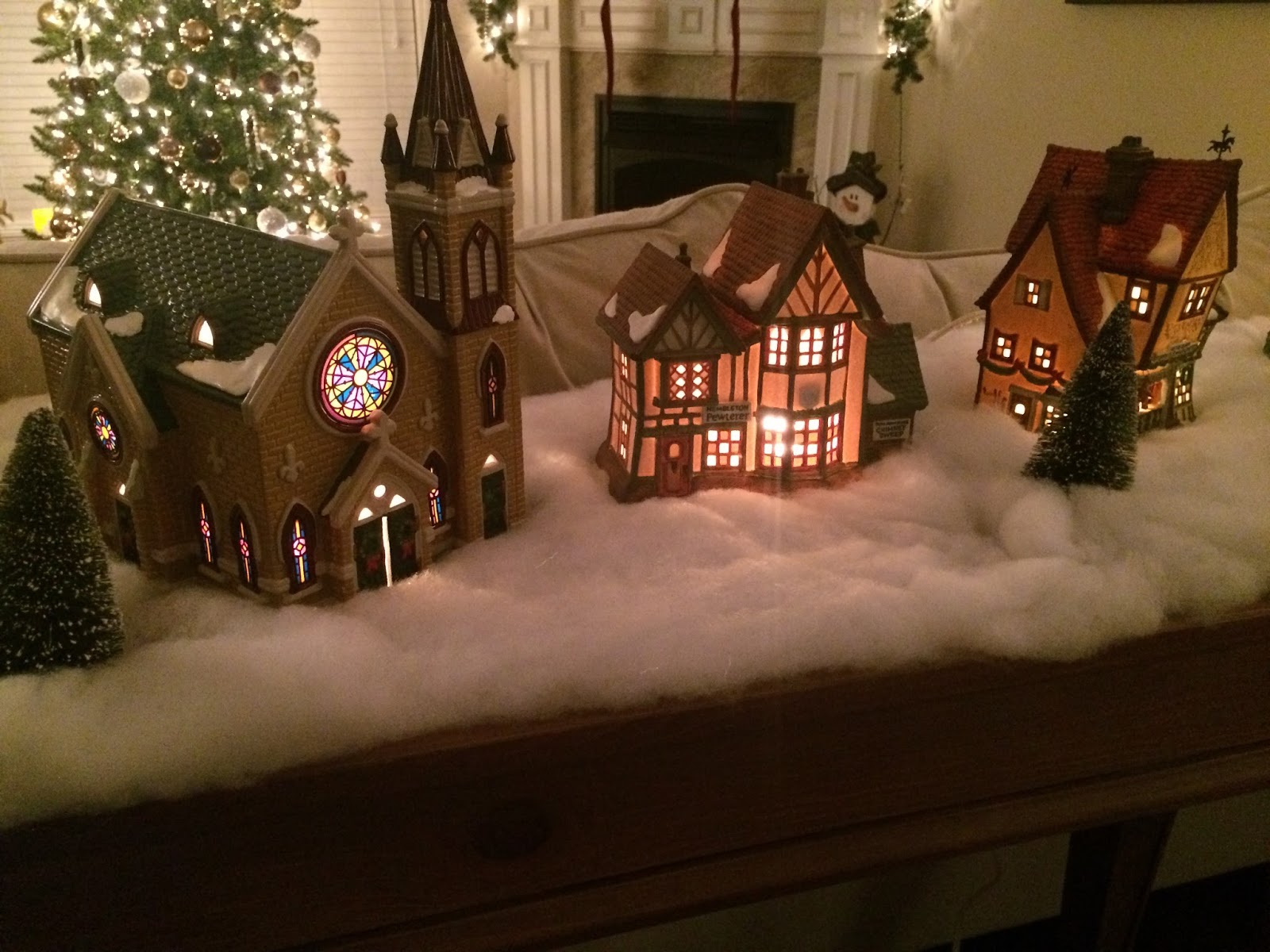 My mother-in-law loaned me her Christmas village to put up! I was so mesmerized by these as a child, and I love that I get to look at this every day.