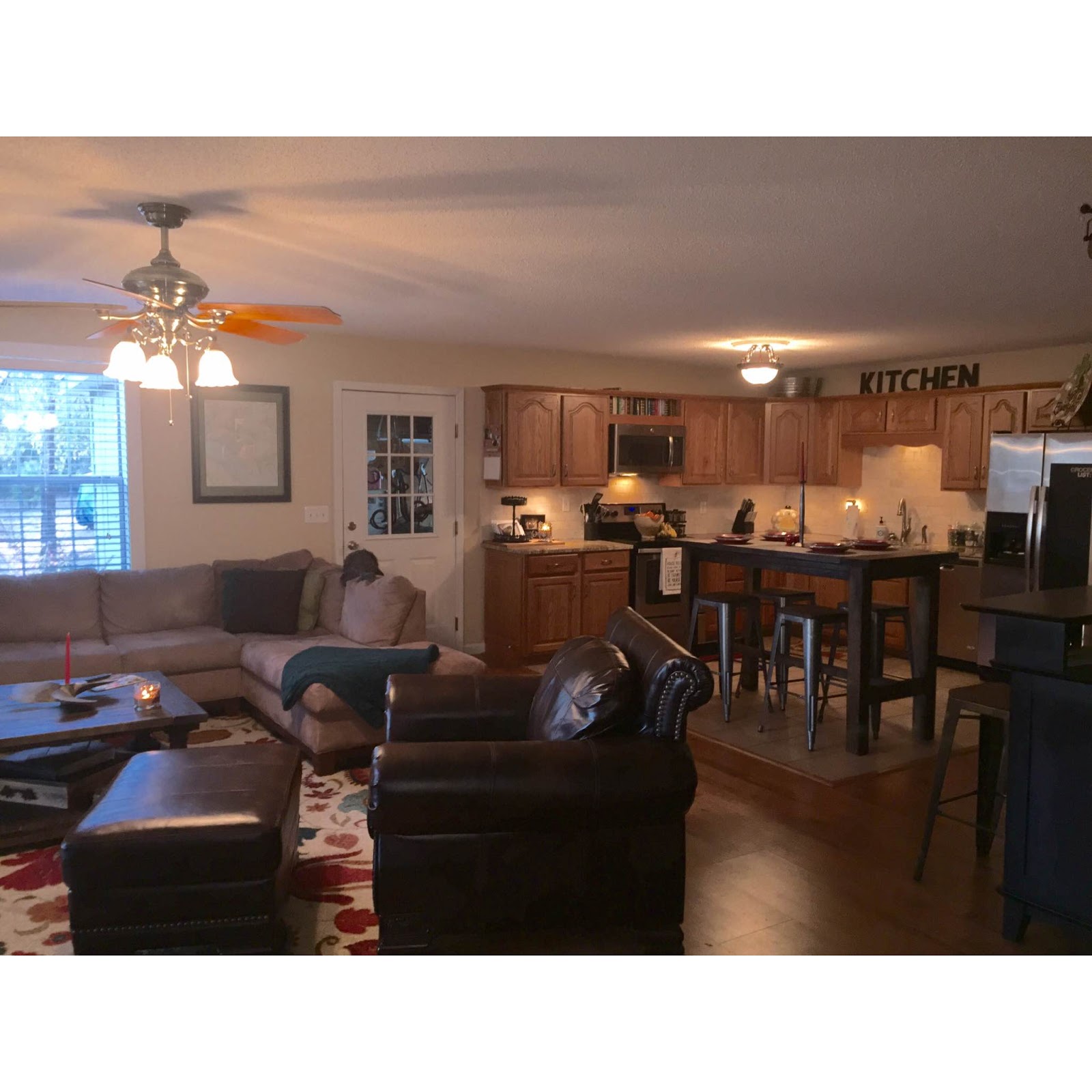The kitchen, living room, and bar area are an open floor plan. (I love an open floor plan which is why we have one in our house!)
