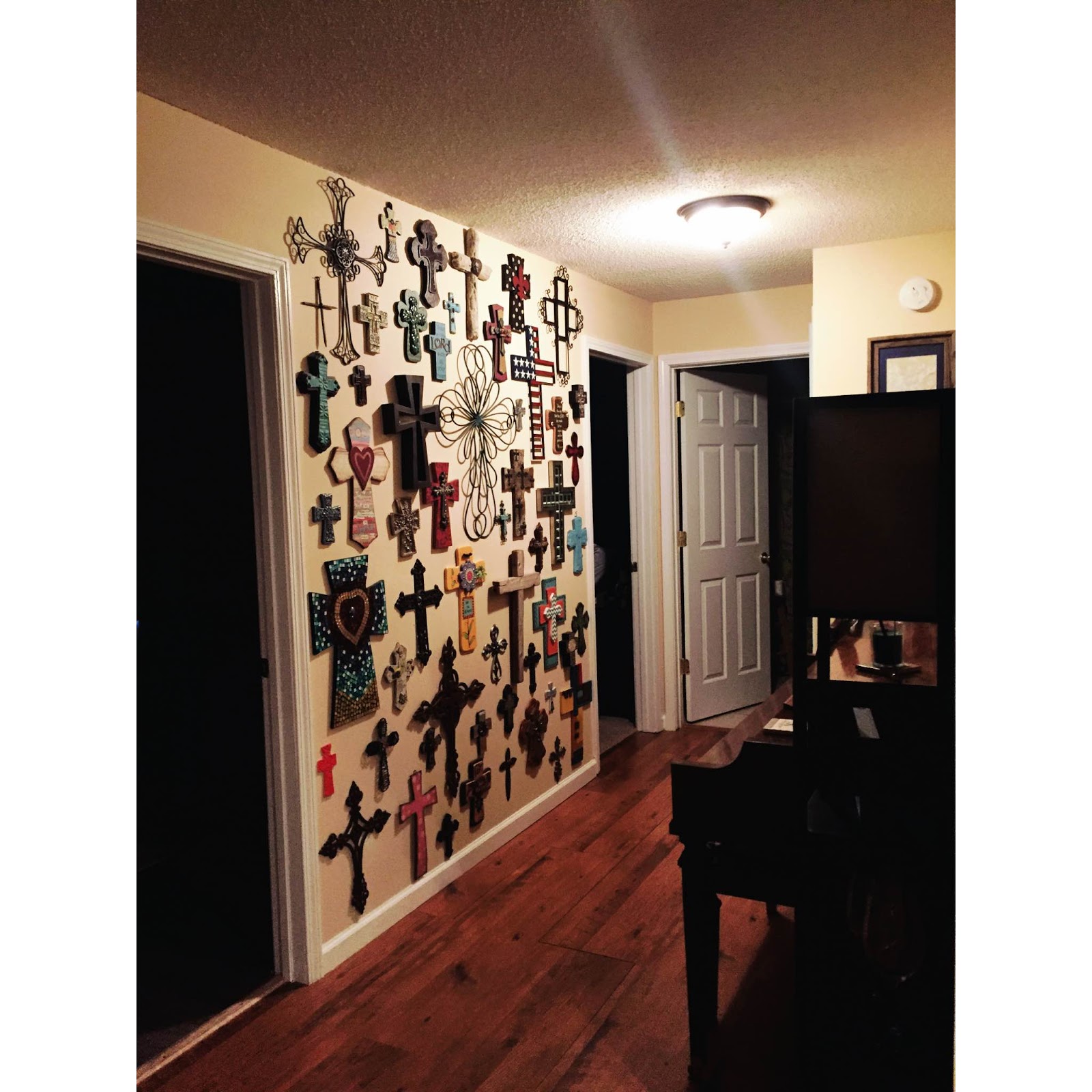 This is the hallway to the lake-themed guest bedroom and guest bath. Don’t you love the wall of crosses?