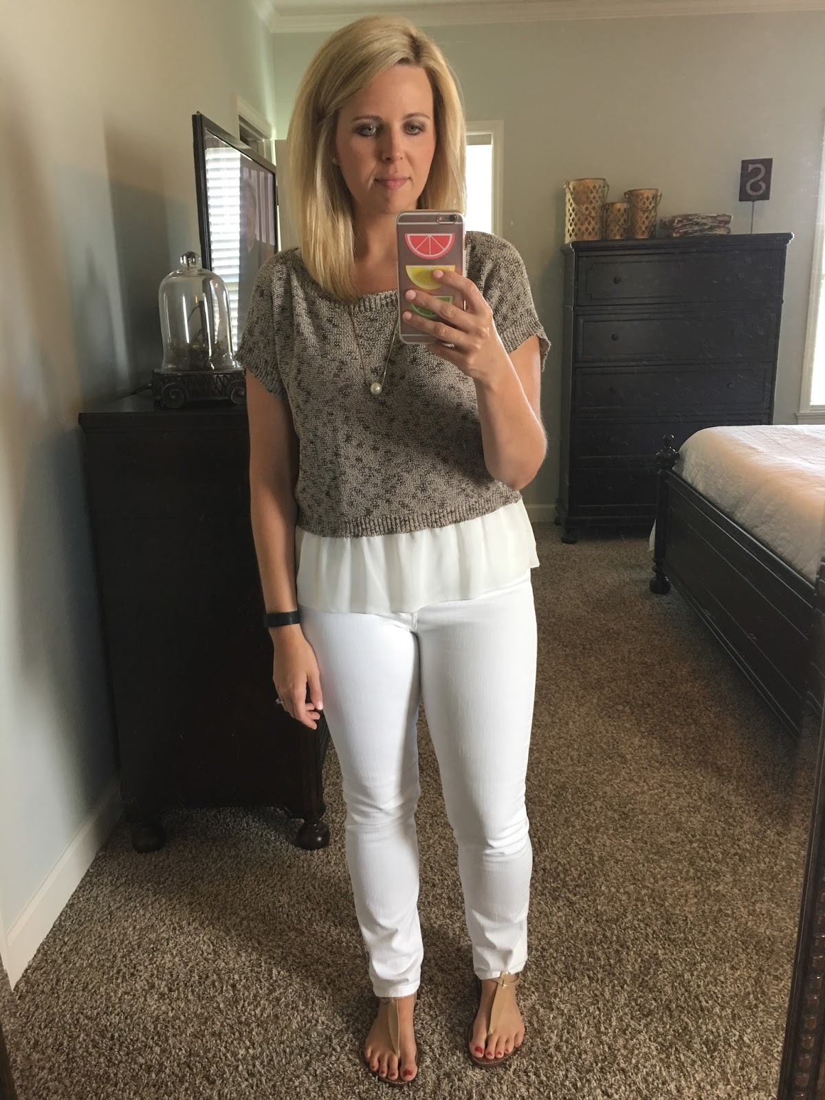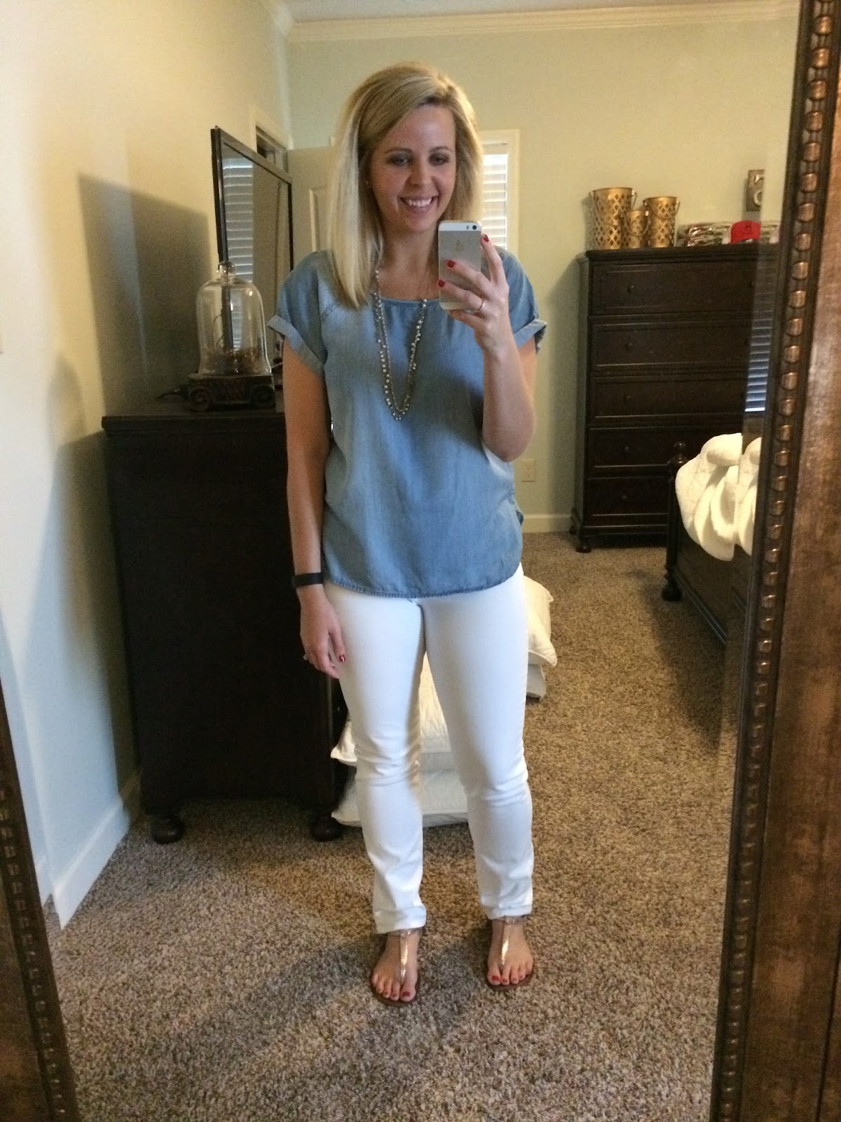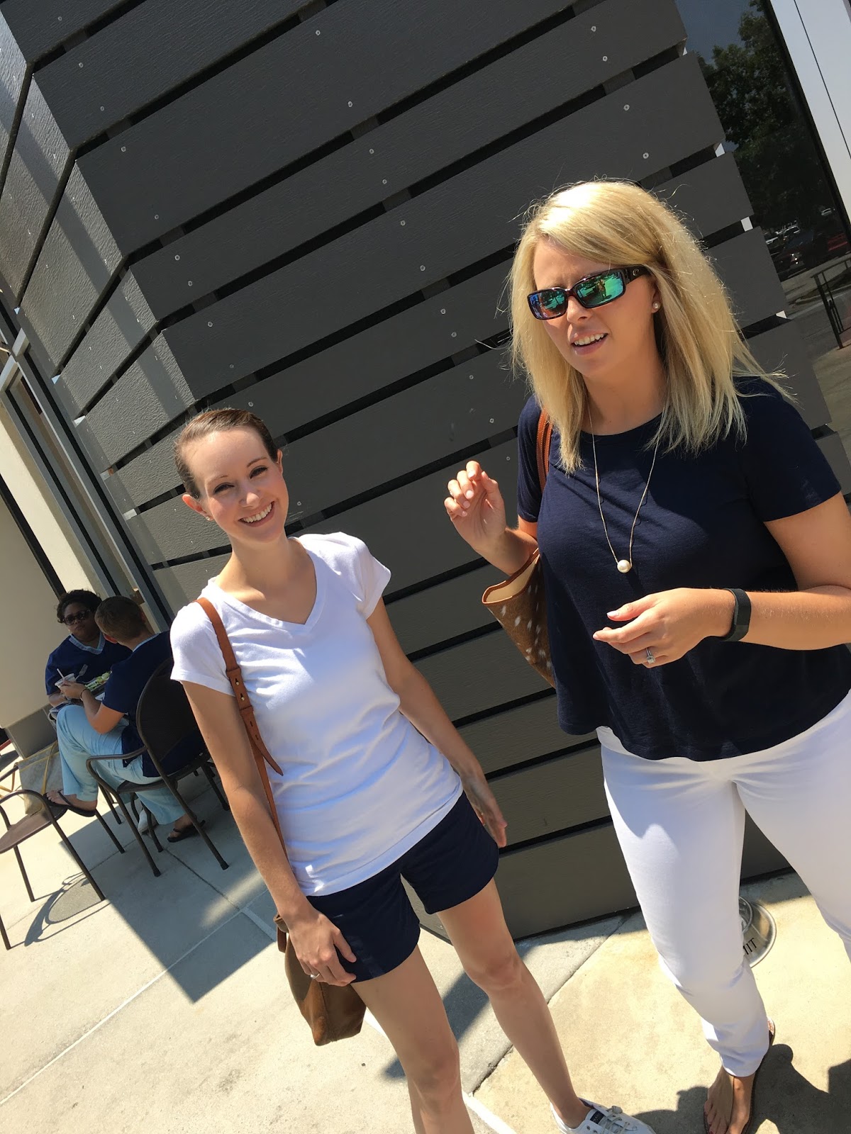 Our furniture shopping on Monday took us to the city my BFF lives in, so of course we had to meet up for lunch. She hates matching anyone so it was hilarious when we showed up in outfits completely opposite of one another! And she couldn’t go home and change haha! I asked Dustin to get our picture and this is what I got. Please notice that Janie smiled then entire time haha!