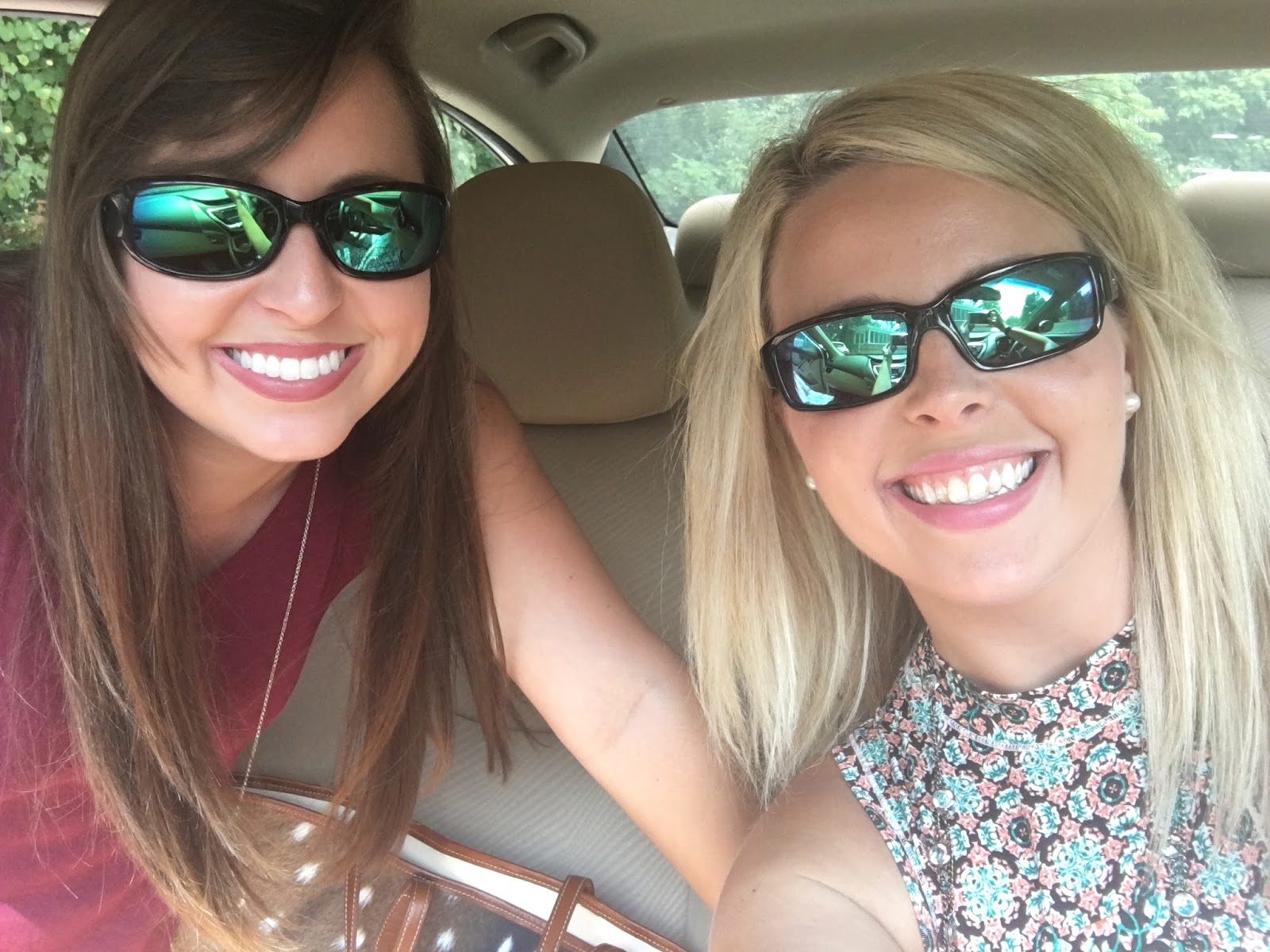 There was a bridal tea after church, so Rachel and I rode together. Can you see how much she copies me? Similar sunglasses, similar dress style, both wearing long necklaces and our OTBTs.