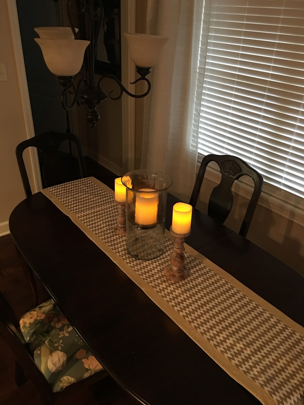 Nothing special on our breakfast table this year. I may hit up after Christmas sales to buy something for the table for next year.