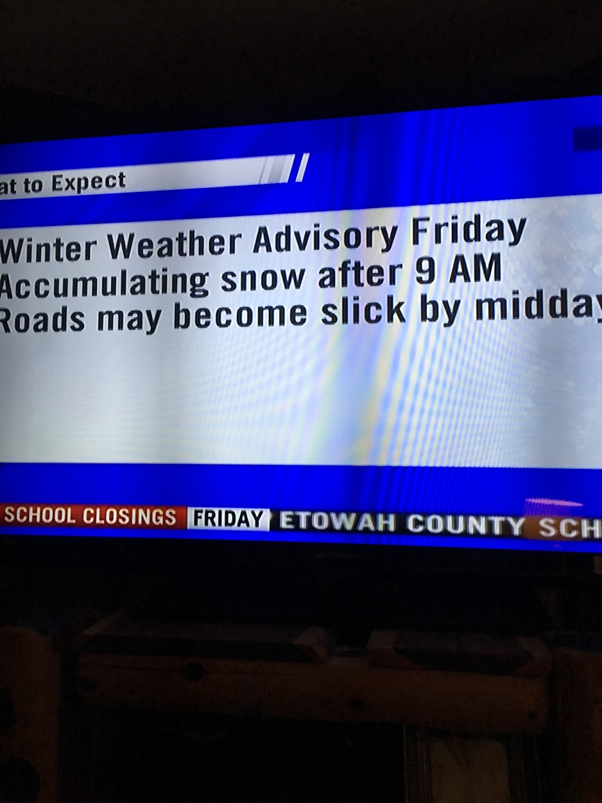 Excuse the poor picture quality, but I took this of the news yesterday afternoon to send to my partner teacher letting her know that the news pretty much agreed with us that we needed to close school for today.