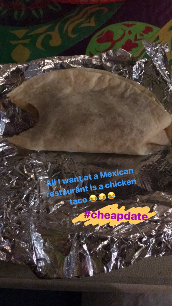 Earlier this week, D and I went to a local Mexican restaurant so I could order my FAVORITE thing–a chicken taco! Literally cost $1.99.