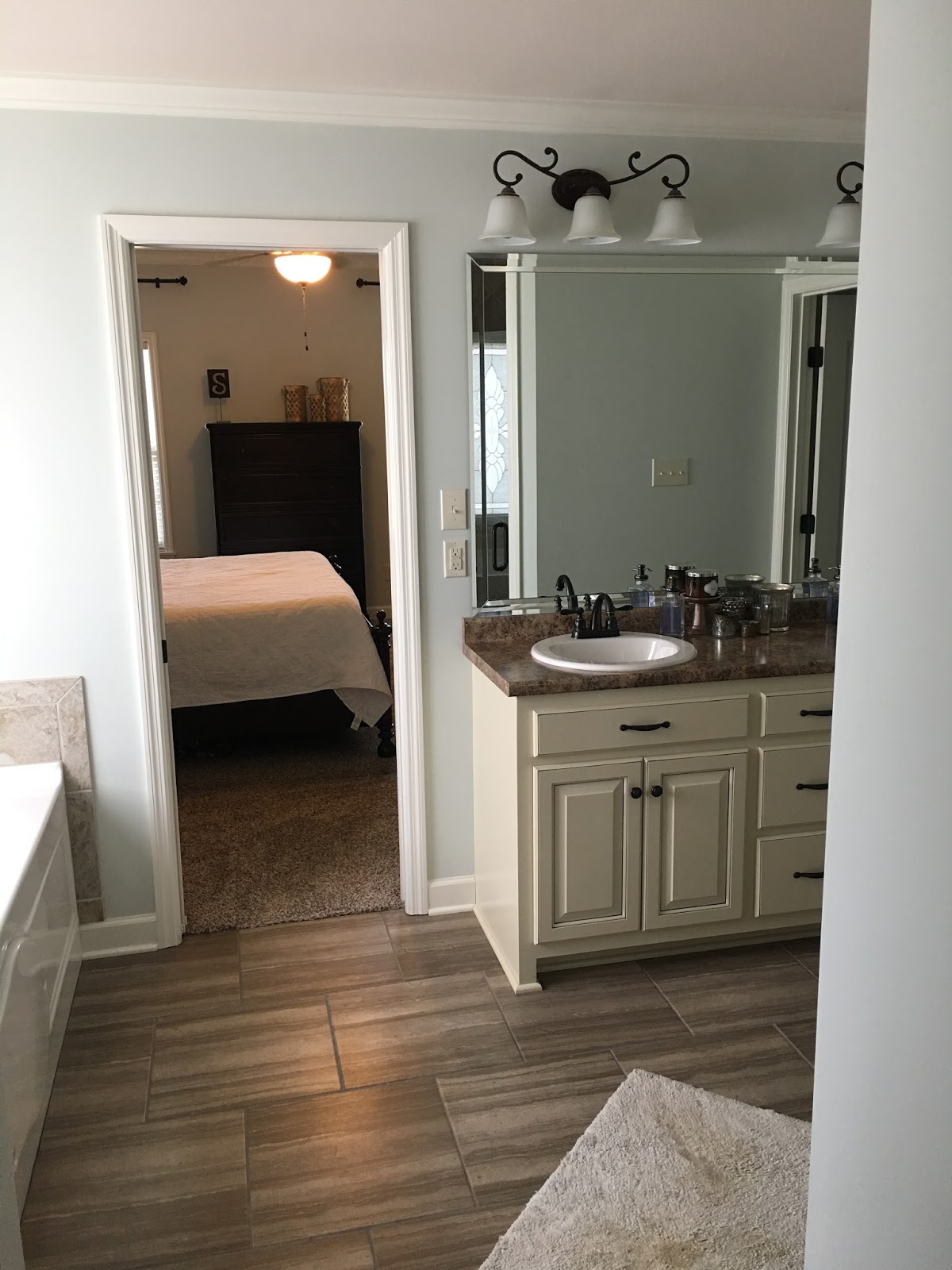 (Bad lighting…sorry!) Our tub is also really big and it’s a soaking tub, not jetted because I did not want to have to deal with cleaning those jets. The linen closet is on the left and our master closet is to the left also.