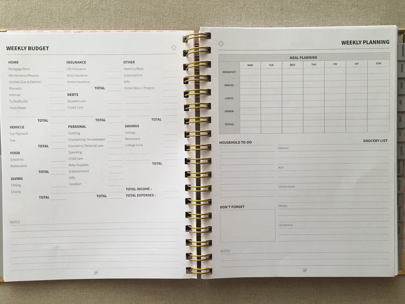 Before you open to each week (which is the next picture), you get an overview of your weekly budget. This is more Dustin’s forte than mine, but hopefully this will help me have more of a part in our budgeting instead of just knowing how much I have to spend on myself ha!