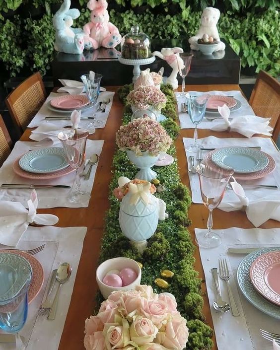 In this one I loved not only the pastel pinks and blues, but also the moss used in the centerpiece. That looks really simple but makes a huge statement!