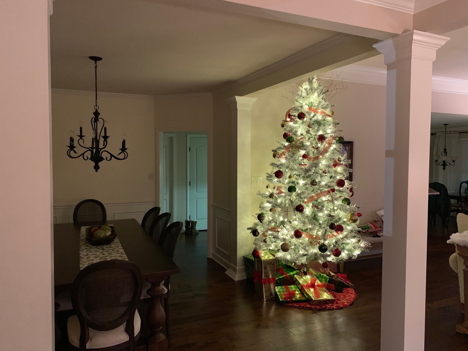 To the left of the entryway is the dining room and I’m just trying to ignore that this year haha! I just stuck a runner on the table and used colored balls in the dough bowl. Next year, I’ll do a little more like I did last year!