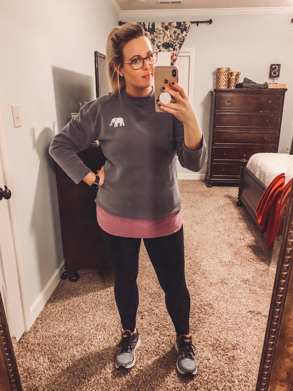 A sweatshirt from college and my favorite cold weather running tights from Lululemon