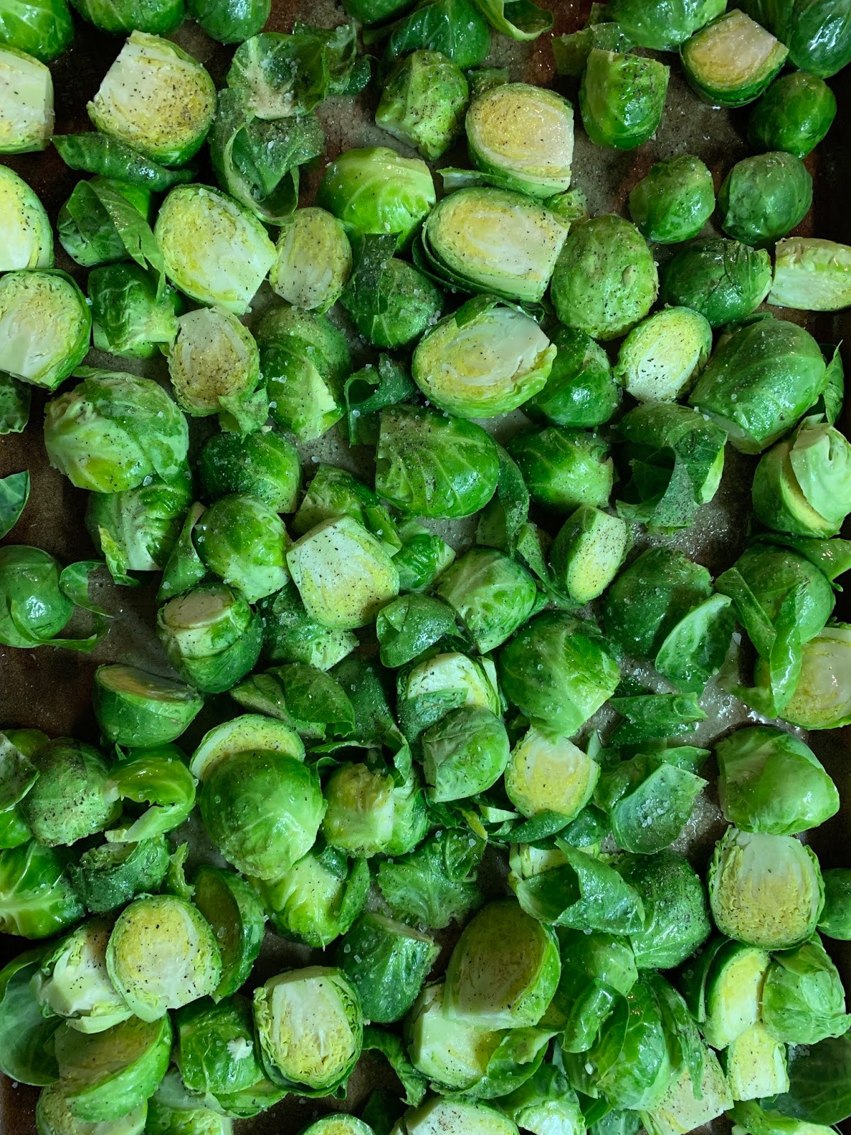 I LOVE roasted brussels sprouts, so I made them for dinner earlier this week. This was before I stuck them in the oven. After I roast them, I like to mix together balsamic vinegar and a little local honey and coat the brussels in that as soon as I take them out of the oven. It’s life-changing!