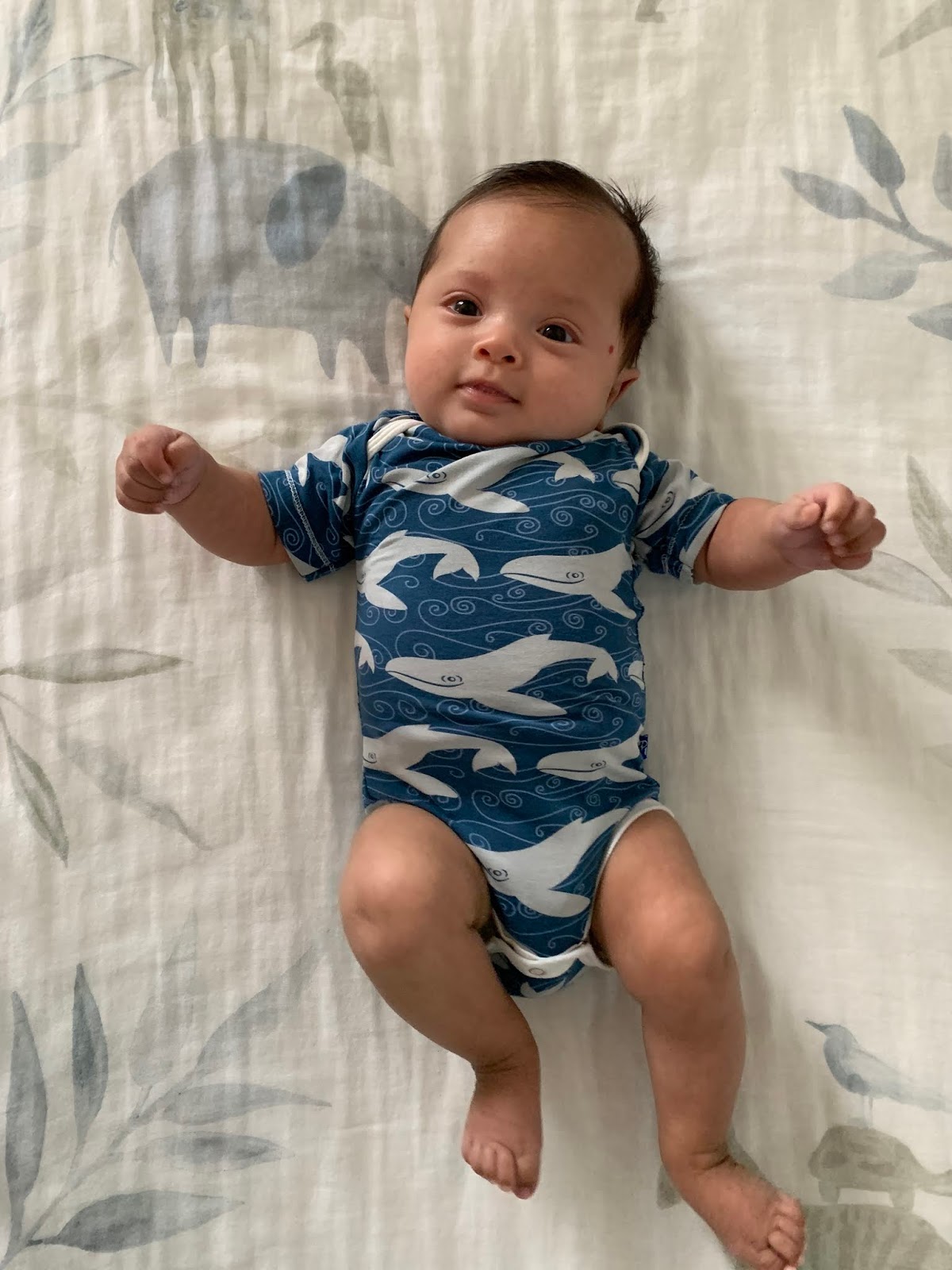 Harrison has started grabbing things with his little hands–my shirts, his blanket or outfit, etc. It’s the sweetest thing. I cannot wait to be home with him every day this summer.