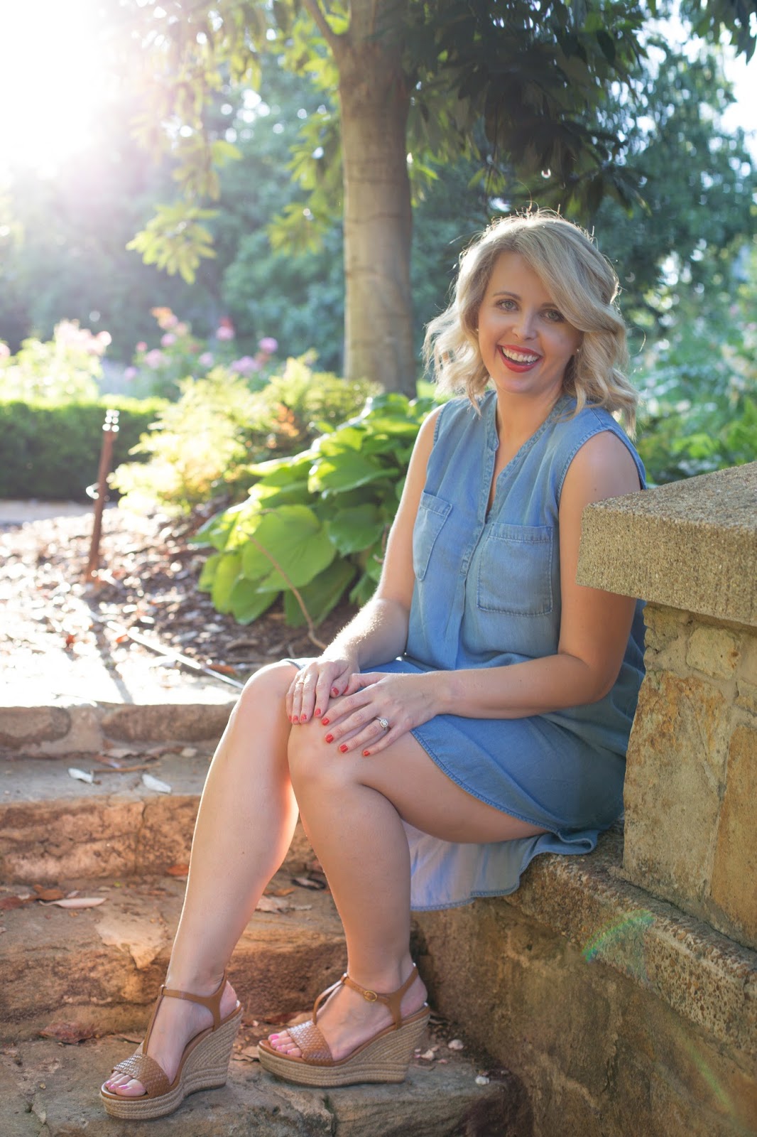 This chambray shirt dress is thin and loose which is the perfect combination for a party outside. Before I bought these wedges, I read and reread reviews online to make sure I was getting quality shoes (my main concern is “Can I stand in these all day teaching?”), and these are literally the perfect teacher shoe! They are like walking on clouds, so don’t be alarmed if you see me wearing them in all of my pictures until I’m forced to wear close-toed shoes ha!