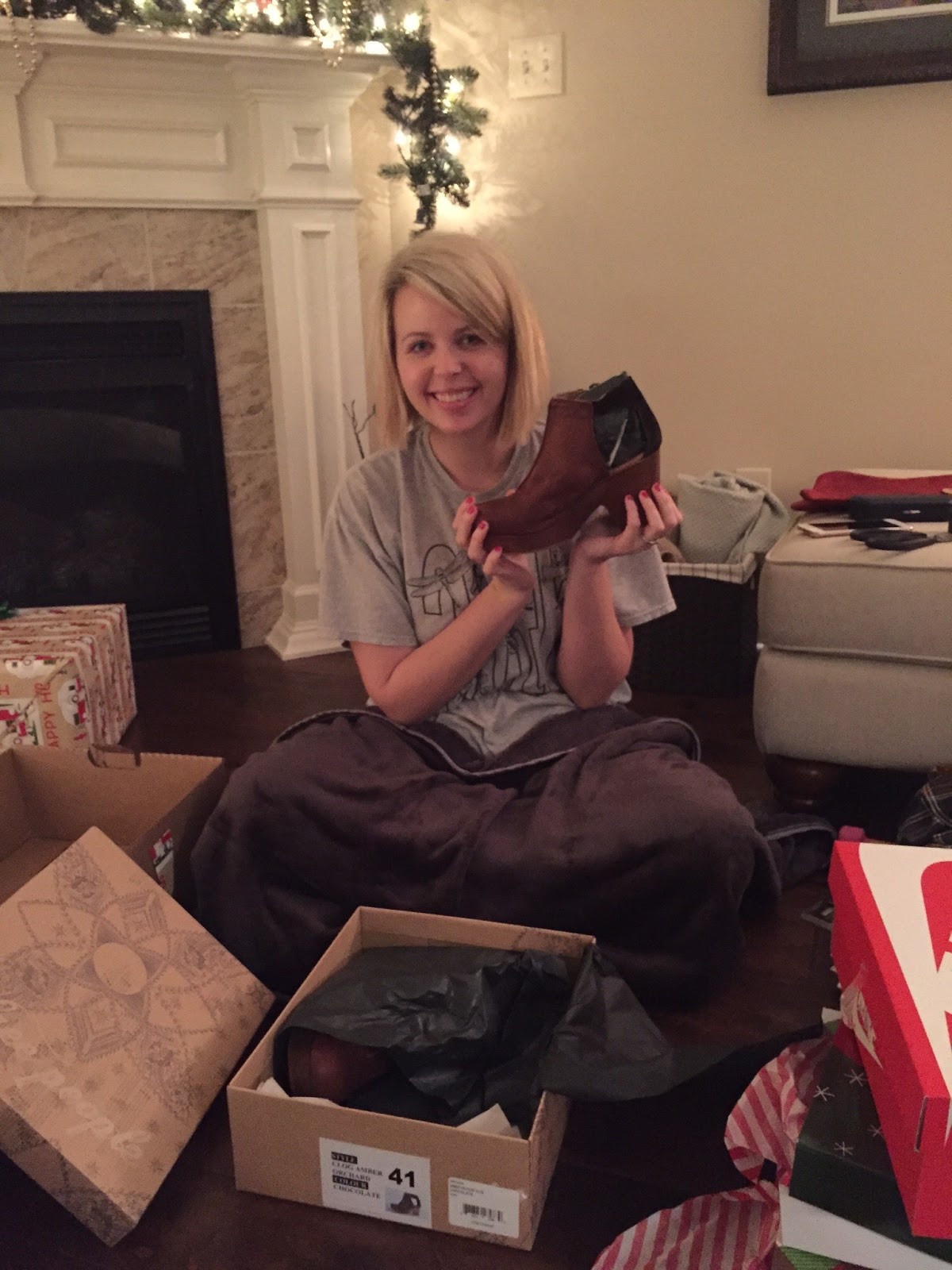Unfortunately, Dustin had to work this weekend. So we were up bright and early Sunday morning to open presents before he had to leave for work! Ignore how awful I look because it’s 3:30 in the morning ๐