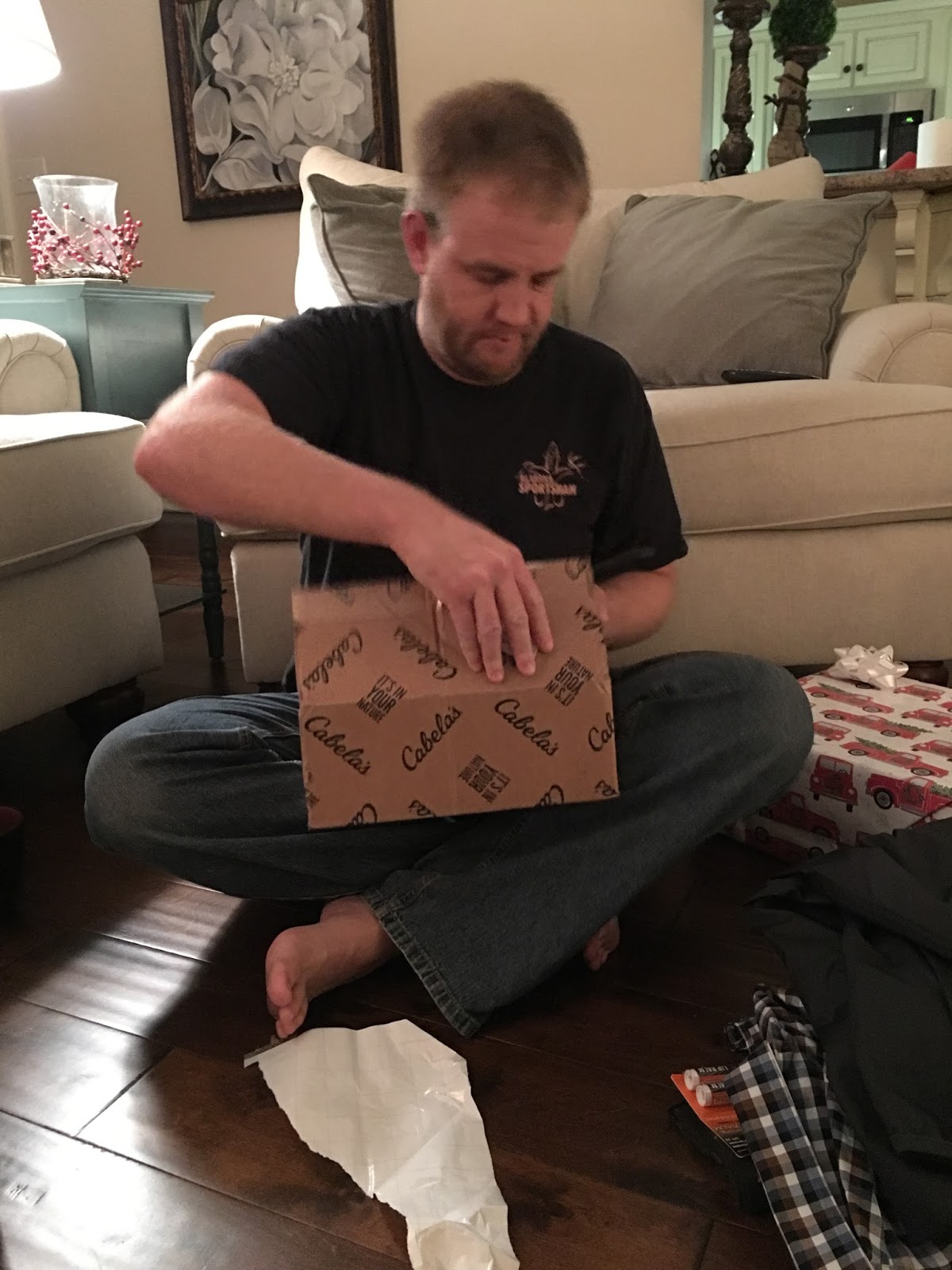 Opening the gorgeous bracelet my MIL bought me and had Dustin give to me Christmas morning ๐