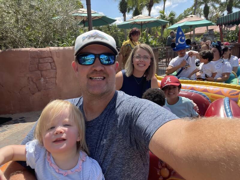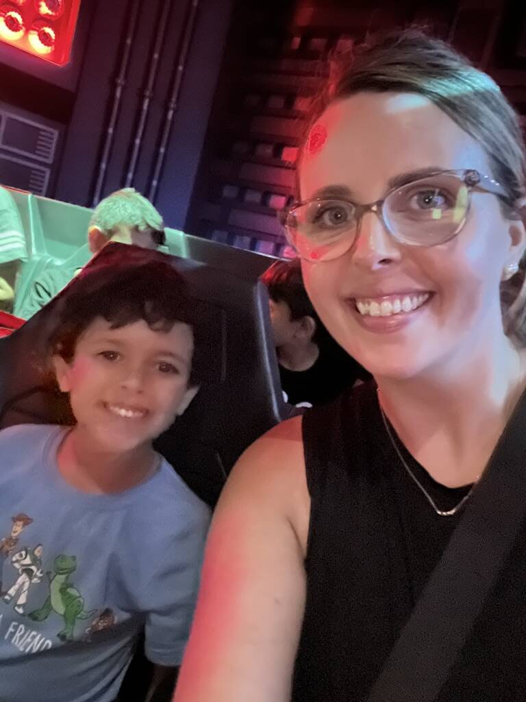 We both signed up for Lightning Lanes for the trip and then an app that automatically booked the other LL for us, so we didn’t have to stay on our phones. We booked lots of rides to do together, and Harrison even rode Space Mountain with Abigail and Chris!