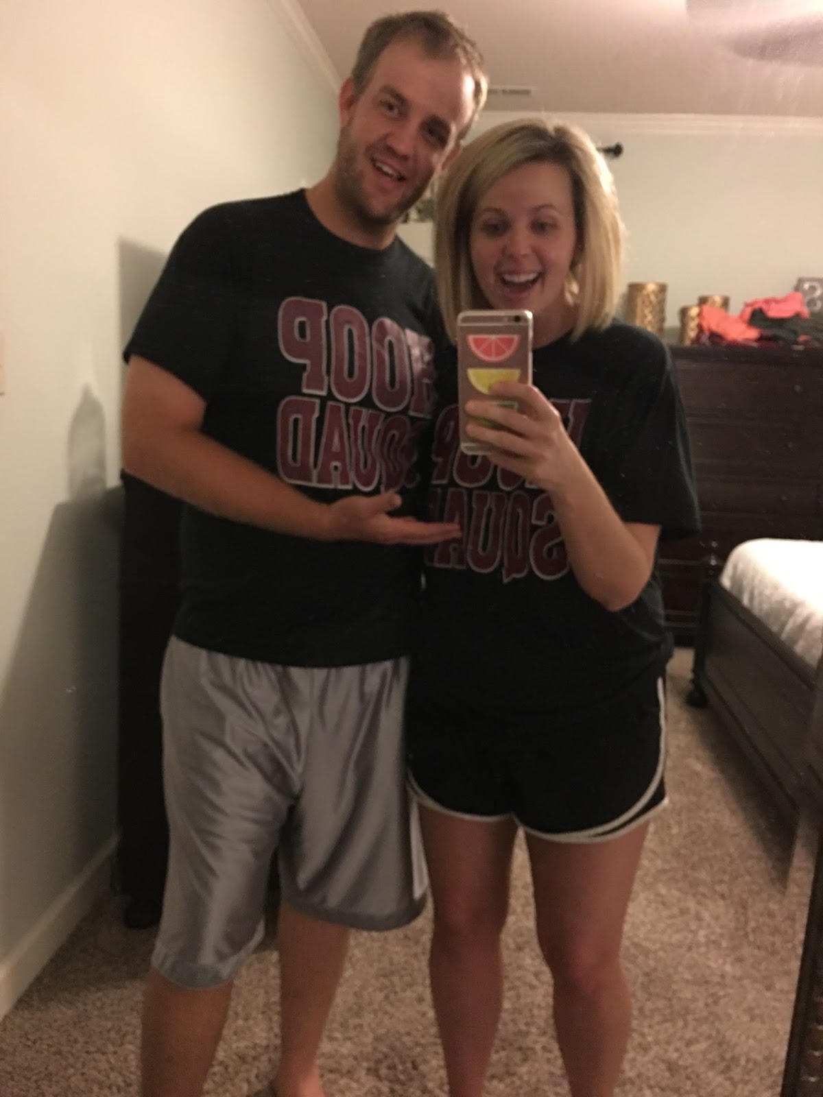 After Dustin got home Friday evening and we had supper, I went ahead and hopped in the shower so I could get my pajamas on and catch up on Grey’s. I laid on the couch under a blanket watching Grey’s while he listened to the local football game on the radio. Neither one of us paid attention to what the other was wearing until I got up to go to bed. We were wearing the same shirt from high school! It was from Dustin’s senior year and my freshman year haha!
