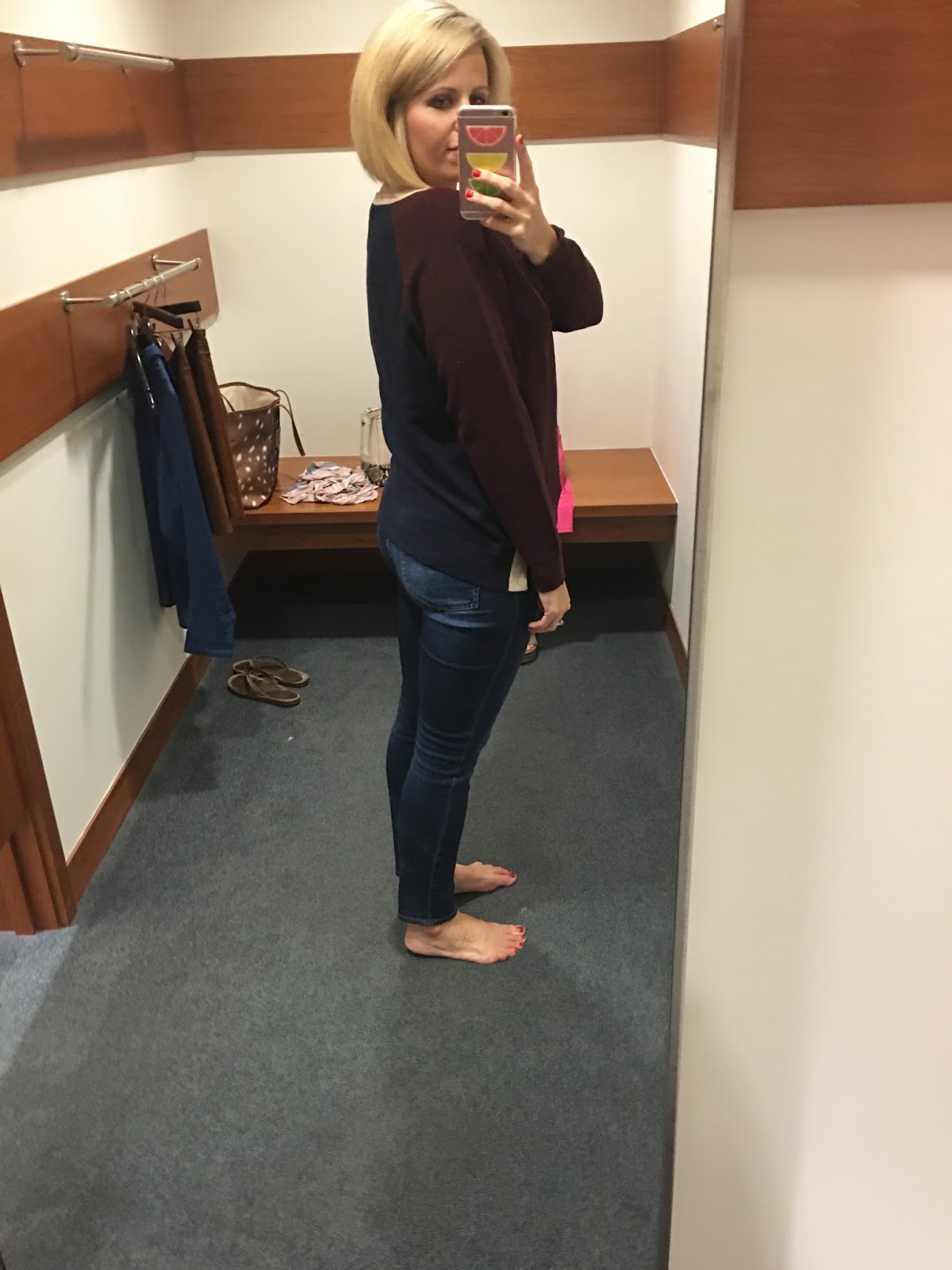 As soon as I saw this color block sweater in the most recent JCrew catalog, I knew I had to have it. I love the maroon and navy pairing too!